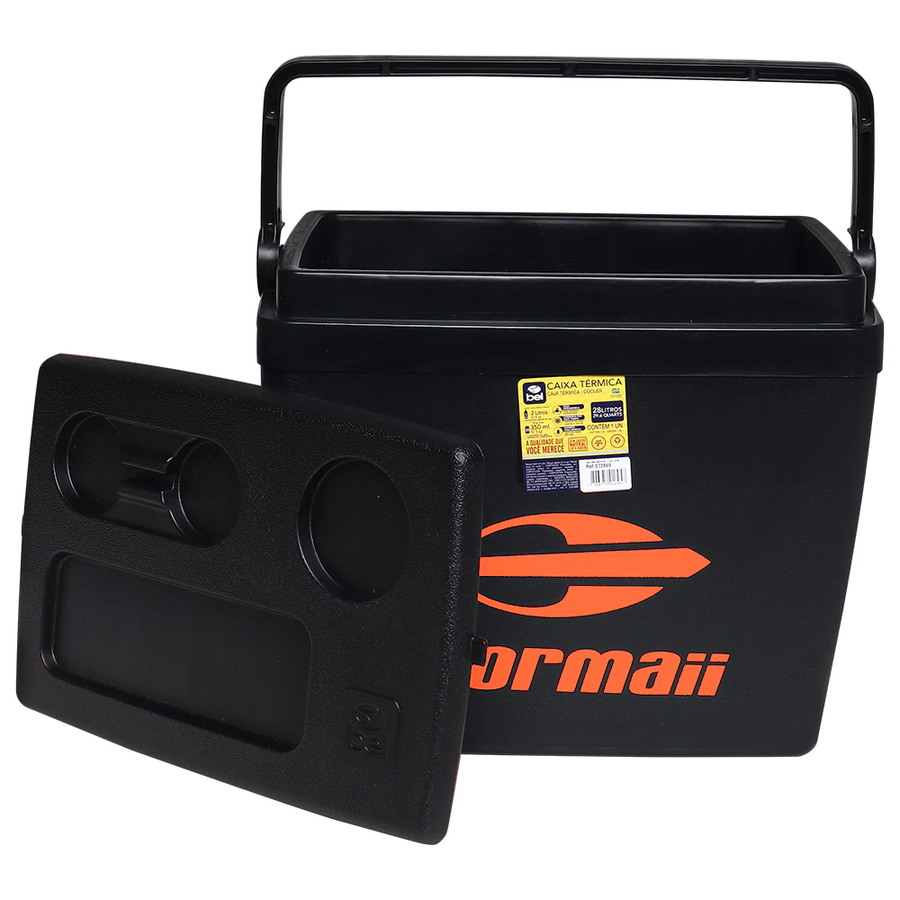 ✔️ Design Funcional: tampa com suporte para copos e trava de segurança, além de alça ergonômica para transporte fácil e confortável.