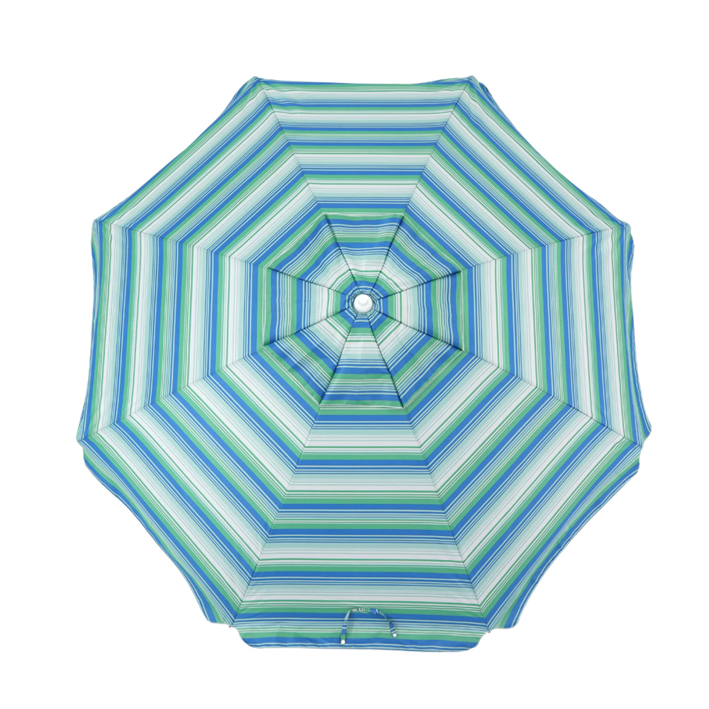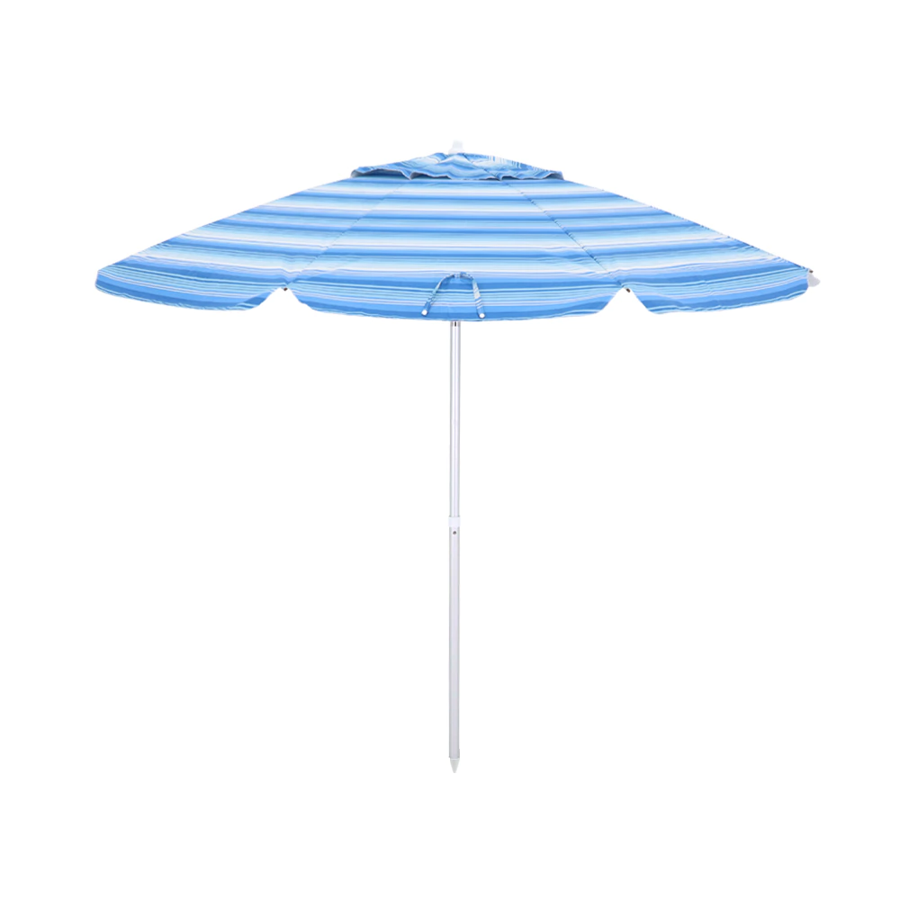 Apresentamos o Guarda-Sol em Poliéster Listrado, o seu aliado perfeito para criar um refúgio de sombra e conforto em seus momentos de relaxamento ao ar livre. Seja desfrutando de um dia ensolarado na praia, refrescando-se à beira da piscina, relaxando no jardim ou em um retiro tranquilo no campo, este guarda-sol é a escolha ideal. · Cobertura em Poliéster com revestimento prateado (Silver Coating) · Proteção real contra os raios solares: FPS 60 · Varetas em fibra de vidro · Haste em Alumínio · Extra ventilação Medidas: · Envergadura: 2,40 metros ATENÇÃO: Esse produto é enviado em cores/estampas sortidas, de acordo com estoque disponível.